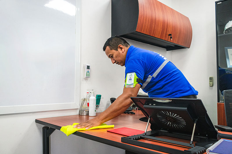 Servicio enfocado en mantener impecable cada uno de los espacios de las instalaciones de nuestros clientes para un mejor ambiente laboral, cuidando de cada detalle al momento de la limpieza.